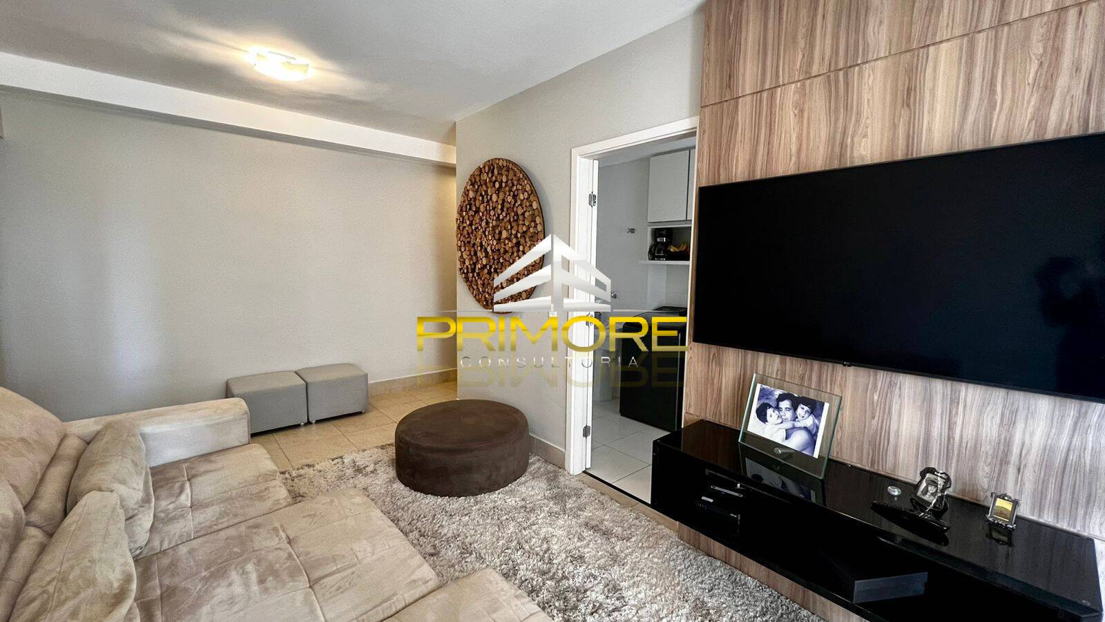Sala para dois ambientes, finamente decorada e mobiliada;